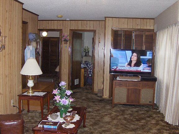 This one level vinyl sided home is on a beautifully landscaped 1 acre lot with fenced back yard,garden area and large storage building. Dining area and den are both carpeted, country kitchen with laundry room have vinyl flooring. 2 large bedrooms, one with it's own private bath and large walk in closet. Lower level den has buck stove, private entrance, closet and could easily add 3rd bath and use this as bedroom. Wonderful screened in back porch with hot tub and carport