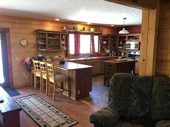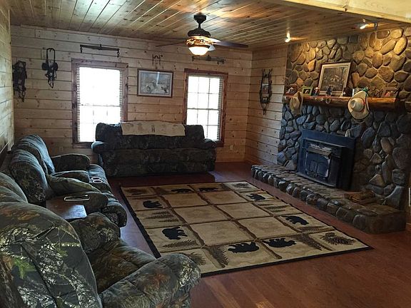 Secluded log home sitting on two acres with lots of space inside. The ground level features an open kitchen with a gorgeous rock floor. The spacious dining room has double glass doors leading into the backyard with a 27' two year old pool. Very open large den with a wood burning fire place. Also on the ground level is an 12x13 room that could be used as an office or sitting room. The washer and dryer room is 9x13 with a large attached pantry. The home features mostly all new light fixtures through out. Heading up the gorgeous open staircase is four bedrooms and two full baths. The master bedroom features a large bathroom with a walk in closet. The basement features 9' ceilings and two rooms, with one being used as a 5th bedroom currently. The room being used as a bedroom features another full bath. The basement is also shared with a large 19x31 two door garage. The house could use some cosmetic updates and the seller is flexible if some are needed prior to closing. The large covered front porch has beautiful views of the wooded area all around the property. The sellers also just replaced both garage door openers and motors! Properties like this don't come available very often and you don't want to miss this gem!