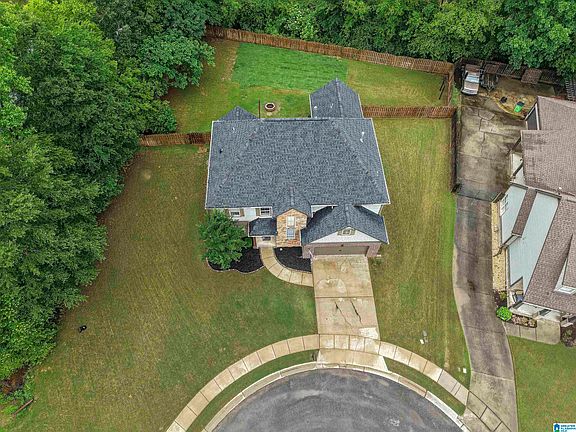 Welcome to Sweetwater in Springville. This beautiful home is built on a half acre+/-, flat, double lot in a quiet cul de sac in the original 1st Sector. New roof 2023. Permanent concrete/metal storm shelter in garage! Massive, flat fenced back yard. 1.5 stories at approx 2,546+/- SF of living space. Main level features massive great room with vaulted ceiling and fireplace, open kitchen with island bar, eat-in area, and back patio access, and formal dining room. Back yard features covered and open patio, firepit, and is fully fenced. Main level master suite with dual vanities, sep shower, garden tub and walk-in closet. Main level laundry and half bath. Upstairs features large, open den, 3 additional bedrooms and a full bath. New carpet upstairs, fresh paint and touch ups throughout.