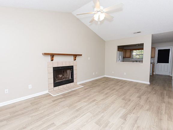 Introducing a charming 2-bedroom, 2-bathroom home in the heart of Jacksonville, NC. Step inside to a quant foyer, there is also a convenient coat closet at the entrance. Next you will fall in love with that spacious living room, complete with a cozy fireplace, perfect for entertaining or relaxing. The layout is thoughtfully designed with a guest bathroom dividing the two bedrooms, ensuring privacy and convenience. The primary bedroom features a private full bathroom, offering a personal retreat. The home is adorned with LVP flooring in the main areas, adding a touch of elegance and ease of maintenance. The eat-in kitchen is equipped with washer and dryer connections, making laundry a breeze. The home also features a private driveway, providing ample parking space. Step outside to a lovely patio, perfect for outdoor dining or simply enjoying the weather. A storage room off the patio provides extra space for your belongings. This home is located within the city limits, offering easy access to local amenities. Don't miss out on this gem in Jacksonville, NC.