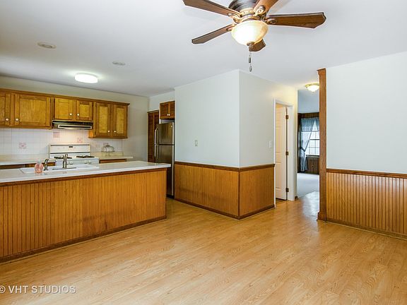 Spacious 3 story townhome with *gigantic* deck for entertaining, open to private green area, fresh paint and carpet - beautifully move in ready! Enter this hillside townhome to a welcoming foyer, oversized garage and HUGE laundry/mud room/storage. Upstairs to main level has open concept kitchen overlooking space that could be dining room, or potentially sitting area/family room. Convenient powder room and sunny living room w/built in shelving. Upstairs to full bath and 3 bedrooms, master has an adjacent sitting room/suite. Outstanding location in Cary, close to 3Oaks Rec area, 1 mile to Metra, convenient access to Rte 14. Complex has outdoor pool, clubhouse - ample guest parking, lovely maintained landscaping. Not to be missed!