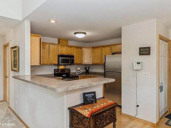 This is your ideal condo and neighborhood, with a scenic, landscaped pond in back and safe walking trails, near Scott Park. Large kitchen and living/dining rooms upstairs: two bedrooms or office space with vaulted ceilings. Four ceiling fans. Finished lower-level area and patio walkout view of lawn, trees, and pond. Upper-level screened porch and open deck. Plenty of sunlight in the living room from 11 windows and pond reflections. Maple floors through the entry and Kitchen. Plenty of storage in the furnace room and a spacious two-car garage. Finished laundry room with sink, cupboards, and counter space. Charming rose garden in front and space for annuals, plus perennial daylilies along the front entrance sidewalk. The association handles the roof, lawn care, and snow removal. This is your new happy place that anyone will love!