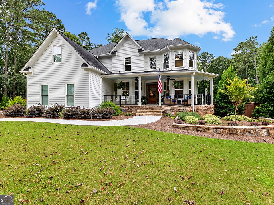 Exceptional 6-Bedroom, 5-Bath Luxury Home with Resort-Style Amenities and Outdoor Oasis! Set in a coveted community with a clubhouse, neighborhood pool and swim team, tennis courts, Brown Lake access, and direct connection to Peachtree City's golf cart paths-this home offers not just a residence, but a lifestyle. Families will appreciate the award-winning schools, vibrant neighborhood spirit, and year-round activities. From the moment you arrive, you're greeted by stunning curb appeal-large bay windows, wrought-iron railings, a welcoming front porch, and manicured privacy landscaping. Inside, luxury meets timeless charm with all-new hardwoods on the main and upper levels, antique doors, upgraded lighting, outlets, and new windows throughout. The show-stopping chef's kitchen features quartz countertops and backsplash, a massive storage-packed island, custom cabinetry, farm sink, and a full suite of JennAir Pro stainless steel appliances- including a gas six-burner cooktop, vent hood, and dishwasher-and-a-half. The adjacent mudroom and laundry room are finished with shiplap, new cabinetry, and thoughtful organization. The living room boasts a stone gas fireplace and flows seamlessly to the formal dining room and office with built-ins and custom millwork. A main-level guest suite offers perfect flexibility for visitors or multi-generational living. Upstairs, the owner's suite overlooks the backyard oasis, with tray ceilings, built-ins, a spa-like bath featuring double vanities, quartz counters, an oversized walk-in shower with jets, rain head, and bench, a Jacuzzi soaking tub, and a massive walk-in closet with custom built-ins. Additional bedrooms include one en suite and two with a Jack & Jill layout and all with walk-in closets. The finished basement includes engineered hardwoods, a bedroom, full bath, music room, media room with kitchenette, storage, and flex space for a gym, guest room, or home business. Step outside and discover multiple outdoor entertainment spaces that elevate every season. Sip morning coffee in the garden surrounded by blooming flowers and berry bushes, or camp under the stars in your own backyard retreat. Enjoy raised garden beds bursting with herbs and vegetables, gather around the stone fire pit for summer nights filled with laughter, and entertain effortlessly on the Trex decking with under-deck sunshades, stamped concrete patio, and outdoor kitchen with built-in griddle. The Pebble Tec pool features a spa, sun ledge, and seating bench; your own private resort at home. Landscaping includes drip irrigation to every plant, blueberry bushes, fig tree, and even a flourishing vegetable and herb garden. The backyard also features a charming powered playhouse, a fully functional chicken coop with water hookup, and a cottage-style workshop or office with A/C perfect for creative projects or remote work. Whether you're hosting pool parties, backyard movie nights, or casual gatherings around the fire pit, this is the home everyone wants to be at. With elegance, comfort, and a deep connection to community and nature, this one-of-a-kind property offers the ultimate lifestyle experience.