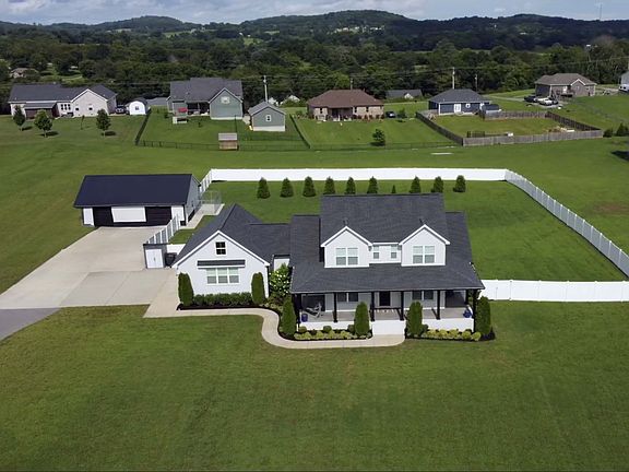 Welcome to the perfect Modern farmhouse! This lovely 5+ acre setting offers Modern farmhouse style combining a blend of classic farmhouse elements like gabled roofs and board and batten siding and covered porches front and back. Modern materials and large windows enhance the curb appeal and take in the fabulous hilltop view. Upon entering, vaulted ceilings add grandeur, natural light, and ventilation to this home. A beautiful stone fireplace surround anchors the great room area and complements the gorgeous kitchen. Open vistas, upgraded appliances, farmhouse sink and stunning tile backsplash that make this home sing with upscale modern charm. The oversized walk in pantry provides the essentials out of sight. The large screened porch provides a full view of the private fenced yard, with inviting spaces for relaxation and outdoor entertaining. The primary bedroom suite is on the main floor and boasts an oversized walk in shower for a spa- like indulgence for everyday enjoyment. Second floor is open to vaulted Great room allowing for ample light to flood additional bedrooms and bonus room.
