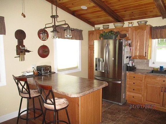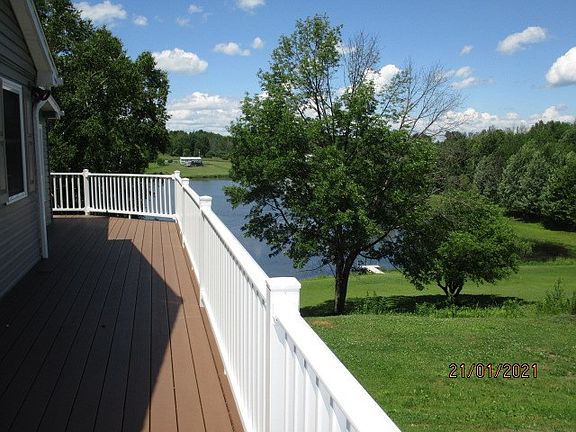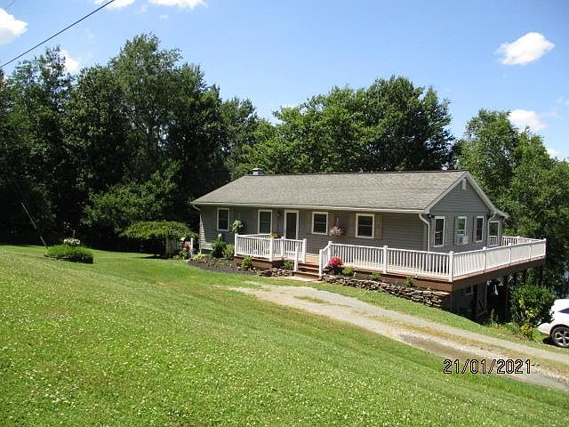 Enjoy sitting on the large wrap around deck overlooking the 22 acre lake from this totally remodeled home. 3 bedrooms, 1 1/2 bath, new kitchen, all new windows. Vinyl siding. Maintenance free decking and railing outside. Vaulted wood ceiling with hickory beams in living room, dining room and kitchen. New hardwood floors and much more. There is a permanent generex generator. Property is close to NY border and Interstate 99. Seller is a licensed Pa. realtor. Listing agent must be present at showings.Taxes and square footage taken from courthouse records. 24 hour notice to show property.