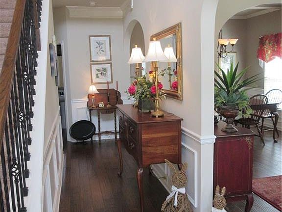MUST SEE- Won't last long...Welcome to this spacious 4 bedroom 2.5 bath home with a screened in porch. This home features wood floors throughout the first level and all upstairs bedrooms. Downstairs has lots of space for the family. It hosts a living room, dining room, family room and the kitchen. The spacious kitchen comes with double oven, gas stove top and granite counter tops. The large family room has a beautiful stone fireplace. The formal dining room has shadow boxed trim and chair rail. Upstairs is a large Master suite which includes a tile shower, large garden tub and tiled floors, double vanity and a huge walk-in closet. The other three bedrooms have vaulted ceilings and large closets. Two of the rooms share a jack-n-jill bathroom. The custom laundry room is upstairs as well. The fenced-in backyard looks out into the woods. Irrigation in front and backyard. Attic has a storage system and added flooring.
