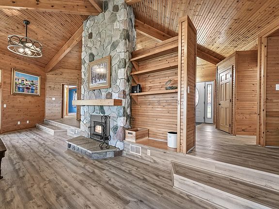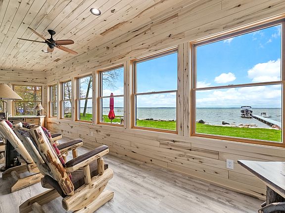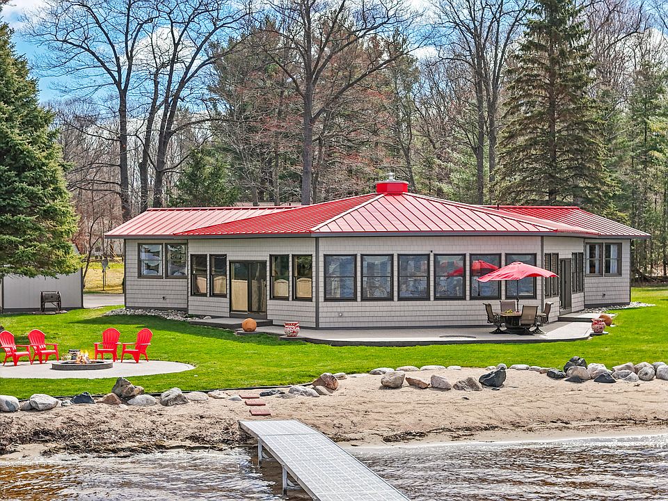 Current owners have completely renovated this .6-acre estate containing 115 feet on Houghton Lake's main east shoreline over the past two years and are selling with all major furniture included! Renovations include premium brand vinyl shake exterior siding, entrance, and garage doors, 24 gauge standing seam metal roofing on both house and garage, along with professionally designed aggregate porches, decks, and fire pit area. The all new includes asphalt driveway and parking area, 200 square foot shed with storage lofts, hi-efficiency Carrier furnace, top-of-the-line fireplace insert, comprehensive landscaping (especially beach side) including privacy arbors and fence, wraparound water-facing enclosed porch featuring Colorado aspen wood and Anderson windows and doors. This home also features new luxury plank flooring throughout, all new LG kitchen appliances, ceiling fans, fixtures, barn style closet doors, ARLO wireless security system, and much more! The STARR 4200 lb. hydraulic boat lift and Twin Bay composite docking system are new and included.