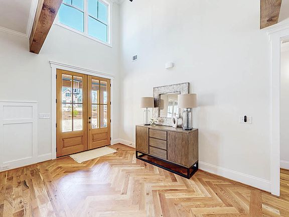 Spectacular Custom New Home: A Masterpiece of Modern Living! Welcome to your dream home, where elegance meets functionality in a stunning blend of contemporary design and timeless charm. This exquisite custom-built residence boasts 4 spacious bedrooms and 4.5 luxurious baths, perfectly crafted for both comfort and style. As you approach, be captivated by the amazing curb appeal, highlighted by solid wood front porch columns and a striking herringbone brick pattern that invites you to explore further. The moment you step inside, you are greeted by a grand foyer showcasing an impressive herringbone pattern that sets the tone for the sophisticated details found throughout the home. The heart of this home is the gourmet kitchen, a culinary haven featuring leathered granite and quartz countertops, complemented by matte black Cafe appliances, including a 6 burner gas stove top and refrigerator that merges style with high functionality. Enjoy the convenience of under-cabinet lighting illuminating the space, and a charming fireclay farmhouse sink that adds an artisan touch. The butler's pantry and walk-in pantry, complete with wood shelves and pull-out drawers, provide ample storage for all your culinary needs. The living room is a masterpiece in itself, featuring custom built-ins designed to house your electronics, a cozy gas fireplace, and a coffered ceiling that enhances the room's grandeur. The dining room boasts a grand ceiling treatment featuring wood beams and shiplap. The main level owner's suite is your personal sanctuary, adorned with a vaulted shiplap ceiling and a luxurious bathroom that indulges with a double sink vanity, a frameless glass rain head shower with a seat, and a freestanding tub for ultimate relaxation.