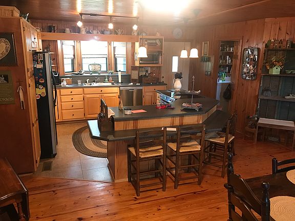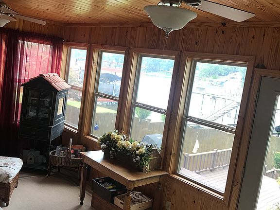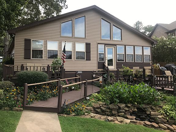 Beautiful waterfront home on Donegan Slough with everything you are looking for to truly enjoy lake living and so much more. Situated on a flat lot with seawall with concrete walkway, nice pier and boat lift, plus a boat ramp and privacy/wrought iron fence. Plenty of deck space and lake side yard. Abundant storage on the street side of the home with several garage storage areas and hookup for a camper. The house itself has lovely updates and features a spacious master suite facing the water, newly enclosed sunporch and more. Open floorpan with beautiful woodwork throughout including built-ins, mantel, etc. Cathedral ceilings with new skylights, updated kitchen with stainless appliances and downdraft Jenn-Air range. Newly remodeled second and third bedrooms and baths with tile walk-in shower. Two loft areas are perfect for an office/playroom or for simply to sit and read a book next to the lake. Finally, a true maintenance free cabin on the lake with all the conveniences you desire
