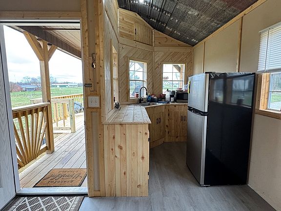 TINY HOME ON 3 ACRES!! Are you looking for an affordable home with acreage? This recently completed tiny home includes one bedroom & one bath sitting on 3 acres and as well as a 12x9 storage building. Every square foot is efficiently designed for maximum use and is surprisingly spacious! The home features a new ductless mini split heat and cool unit, tankless hot water heater, custom built kitchen cabinets and LVN flooring. The cozy bedroom is located in the back of the home and has carpeted floors. Enjoy country views from the spacious 12x15 deck! The land is open level pastureland, perfect for a hobby farm! Utilities with Farmers RECC, natural gas available with LG&E, water provided by Green River Valley, high speed fiber internet with SCRTC.