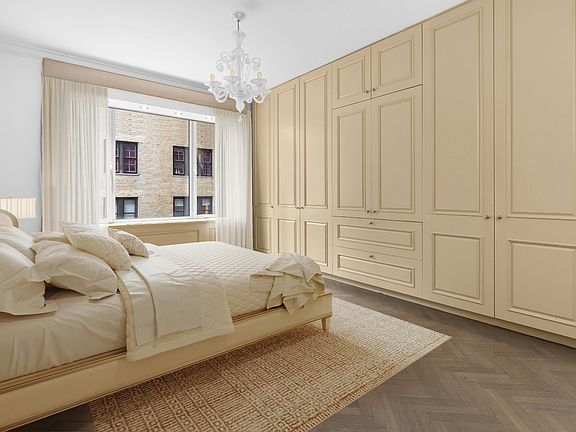 The bedrooms are well-proportioned, with ample closet space throughout. The primary suite features a wall of custom built-in cabinetry, adding a refined Parisian touch. The kitchen has been recently renovated with custom wood cabinetry and upgraded appliances, while both bathrooms are finished in marble with sleek fixtures and Toto toilets. Utilities (heat, hot water, electricity, and gas) are included. Apartment 910 also welcomes dogs on a case-by-case basis.