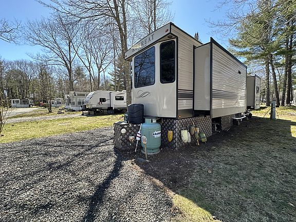 If you are looking for a just like new home at Sea Vu South Resort, look no further than Site 14! This home is conveniently located near the quieter pool and all the amenities at Sea Vu! This 2019 top of the line Keystone Retreat Destination Travel Trailer offers an attached 3 season Florida room with lots of natural light coming in from the multiple windows & there are tasteful blinds throughout the home including the Florida room, central air conditioning & multiple AC vents. The trailer offers 3 large slide outs and is 40 feet long! The kitchen offers a large kitchen island big enough for 4 people to sit & eat around comfortably and there is tons of counter & cabinet space for all your goodies and the stainless steel full size appliances are an added bonus! The home is being sold turn key and offers 4 different sleeping spaces for all your guests! The home sleeps 8 comfortably with a queen size bed in the primary bedroom, 2 couches in the living room that go into beds, and a queen size futon couch in the 3 season room for even more sleeping space! Sea Vu offers a convenient walking path over to Rest View Lane to hop on the trolley, bike/walk to the beach, or enjoy a meal at the Mikes Clam Shack, Steakhouse, or Congdons Donuts & Food trucks without having to get into your car! The park offers 2 pools, jacuzzi, clubhouse, laundry facilities, space to work & spare ''living rooms' in the clubhouse for your use. There are tons of activities for all ages throughout the season & lots of memories made! The park rent of $8,650 includes water, sewer, cable, internet, trash, and all the amenities at the park. There is basketball courts, playgrounds, a fenced dog park, and so much more in this gated community. Have a dog? You can bring pets (but your guests can not!). Season is from May-October 31! Come take a peek at this well maintained home, you've worked hard & deserve it!