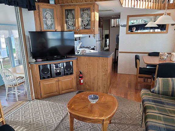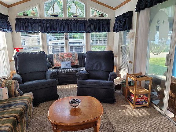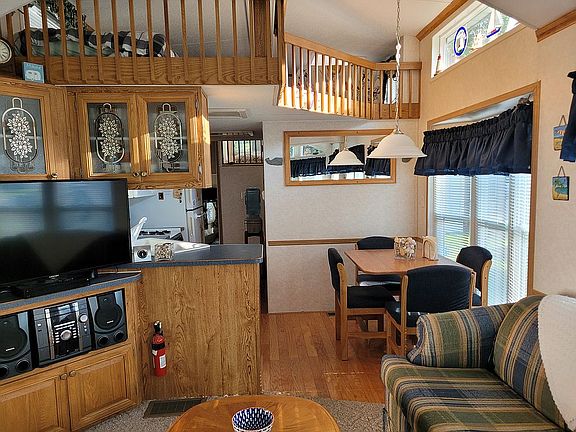 Enjoy a Dream Lifestyle in Gorgeous Wells, ME in a gated seasonal resort-style campground from Mothers day to Columbus day. Kropf 2003 mobile home, double loft, furnished, double living room with accordion doors can be converted for extra (5th) sleeping area, 2 pull-out sleep sofas, washer/dryer, new hot water tank, 2 sheds, lawnmower, 4 tv's, grill, lawn chairs. At Sea-VuSouth whether you’re a homebody or an adventurer, living at Sea-Vu South offers plenty of indoor and outdoor recreation with modern amenities to enhance your lifestyle. Plus, it's conveniently located 1.5 miles from Wells Beach as well as the charming towns of Ogunquit and Kennebunkport.