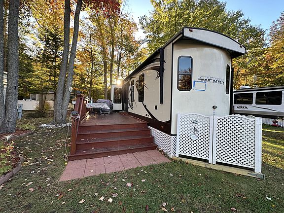 If you are looking for a just like new home at Sea Vu South Resort, look no further than Site 46! This home is conveniently located near the quieter pool and all the amenities at Sea Vu! This 2015 top of the line Sierra Destination Travel Trailer offers an attached outside porch/deck with an electric awning to provide some much needed shade in the hot summer months, central air conditioning throughout the unit from multiple AC vents. The trailer offers 3 large slide outs and is 41 feet long! The kitchen offers a large kitchen island big enough for 4 people to sit & eat around comfortably and there is tons of counter & cabinet space for all your goodies and the stainless steel full size appliances are an added bonus! The home is being sold turn key and offers 4 different sleeping spaces for all your guests! The home sleeps 6 comfortably with a queen size bed in the primary bedroom and 1 couch & 2 recliner chairs in the living room that provide additional sleeping spaces. Sea Vu offers a convenient walking path over to Rest View Lane to hop on the trolley, bike/walk to the beach, or enjoy a meal at the Mikes Clam Shack, Steakhouse, or Congdons Donuts & Food trucks without having to get into your car! The park offers 2 pools, jacuzzi, clubhouse, laundry facilities, space to work & spare ''living rooms' in the clubhouse for your use. There are tons of activities for all ages throughout the season & lots of memories made! The park rent of $8,650 includes water, sewer, cable, internet, trash, and all the amenities at the park. There is basketball courts, playgrounds, a fenced dog park, and so much more in this gated community. Have a dog? You can bring pets (but your guests can not!). Season is from May-October 31! Come take a peek at this well maintained home, you've worked hard & deserve it!