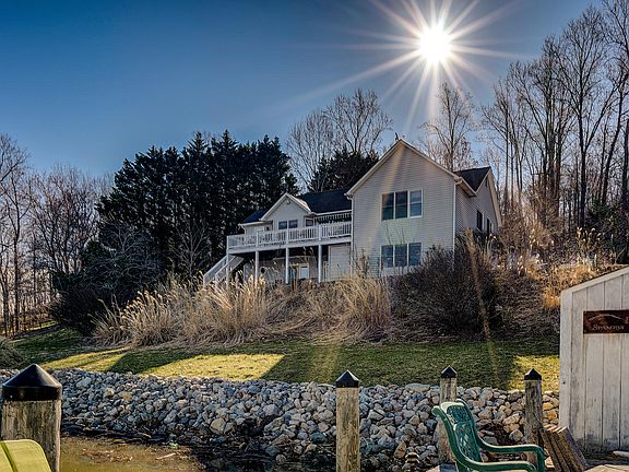 Fantastic location for this Lovely lake home on beautiful point lot with 228' waterfront. Enjoy the views from the living room with stone fireplace, outdoor deck and inviting eat in kitchen with loads of cabinets. The entry level boast 3 bedrooms, 2 full baths (master has jacuzzi tub & walk in closet) and laundry room. Lower level guest suite has 2nd kitchen, 3rd full bath and rec room. Double garage, boat house and so much more.