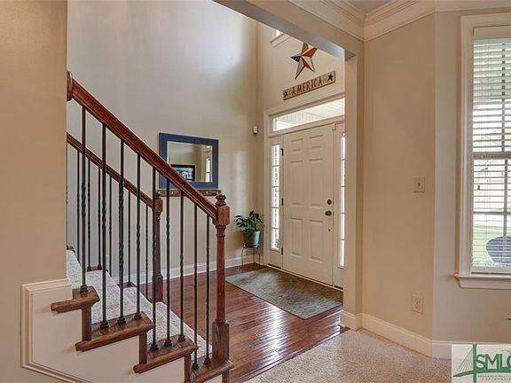 Beautiful 2 story Estate Home, in the desirable neighborhood of Belmont Glen! 2 story foyer entrance with beautiful hardwood floors throughout main living area. Formal living room and dining room w/coffered ceilings. Spacious Great room with electric fireplace. Gourmet kitchen with center island, double ovens, tiled backsplash, stainless appliances & built-in desk. Massive master retreat featuring tray ceilings, sitting area with cozy fireplace and added bump out, perfect for reading your favorite book. Ensuite features double vanities, large soaking tub, separate shower and double walk-in closets. Additional 3 bedrooms and a full bath upstairs. Large fenced-in back yard with covered patio. Award winning South Effingham Schools. Amenity Packed Community featuring tennis courts, swimming pool & kiddie pool, covered pavilion, fitness center, playground, soccer/football field, baseball/softball field & professionally surfaced basketball courts.