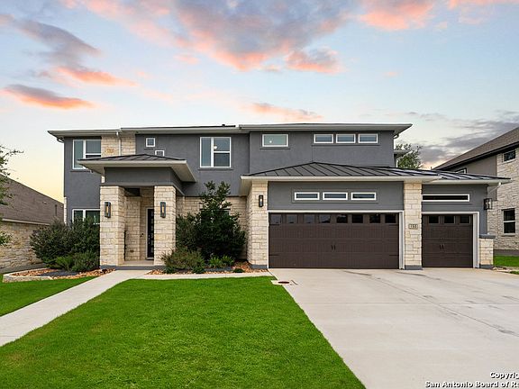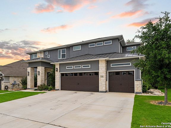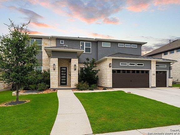 Welcome to your dream retreat in the award-winning Esperanza community-voted "Best Community Overall" and nestled in the heart of the scenic Texas Hill Country. Located in a gated neighborhood, this estate-style home backs to a peaceful greenbelt, offering a rare sense of privacy within one of Boerne's most desirable master-planned communities. This updated and upgraded home showcases 6 spacious bedrooms, 4 full bathrooms, a dedicated office, a media room, and an upstairs game room with a wet bar and full bath-providing the perfect layout for everyday living, entertaining, or multi-generational needs. The thoughtful floor plan also includes two large living areas and two dining spaces, giving you flexibility and flow throughout the home. From the moment you step inside, you'll notice the attention to detail and high-end finishes including custom cabinetry, designer lighting, upgraded flooring, Designer walk-in shower, and a striking fireplace that anchors the main living space. The chef's kitchen opens seamlessly to the living and breakfast areas, creating a warm, welcoming atmosphere. The first-floor guest suite adds extra convenience and privacy for visiting friends or family. The oversized three-car garage offers ample room for vehicles and storage, while the beautifully maintained interiors reflect pride of ownership throughout. Living in Esperanza means enjoying a resort-style lifestyle with amenities like a lazy river, splash pad, multiple pools, 24-hour fitness center, sand volleyball courts, two dog parks, miles of scenic trails, and the vibrant Roca Loca Lawn, where the community comes together for live music, food trucks, and special events. Located in the top-rated Boerne Independent School District and minutes from historic downtown Boerne, this home delivers a rare combination of luxury, space, updates, and community living.