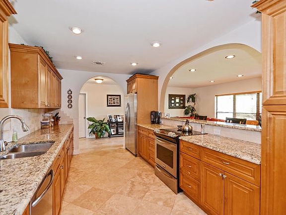Beautifully updated and completely renovated home with custom cabinets, granite, stainless steel appliances, and travertine tile throughout. This spacious turn key home is a 3/2 with an office and has large fenced in backyard. Desirable location! A must see