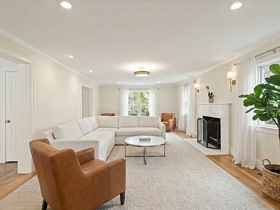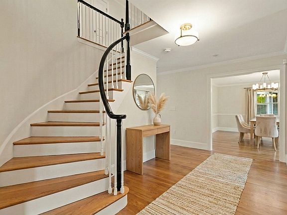 Situated on a beautiful lot in a prime location, this exquisite residence was expanded and rebuilt in 2019 to offer a seamless open floor plan with abundant natural light. A gracious foyer with the original spiral staircase leads to an entertainment-sized living room, private library, formal dining room, and a sun-drenched family room.The heart of the home is the pristine 2025 renovated kitchen, showcasing modern white cabinetry, an expansive island, wine bar, and updated appliances. A versatile 1st-floor bedroom suite offers a private separate entry. The 2nd floor features the primary suite, a guest suite connected to a study, plus two additional bedrooms and laundry. The finished lower level offers a half bath and a newly installed humidity control system. Surrounded by mature landscaping and elegant new hardscapes. Walk to schools.