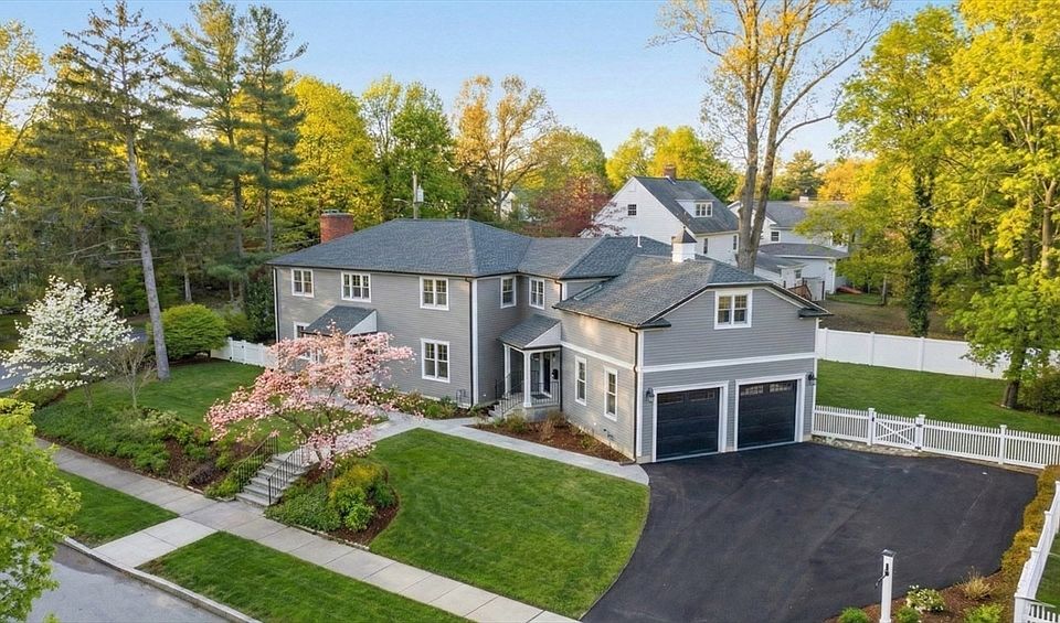 Fully renovated & expanded in 2019, this immaculate home offers exceptional curb appeal on a prominent corner lot in one of Newton’s most sought-after neighborhoods. Flooded w/natural light and updated windows, the expansive main level features hardwood floors throughout and a beautifully updated kitchen w/white cabinetry, oversized eat-in island, abundant storage, updated appliances, and custom cabinetry w/wine/beverage storage. Sliding doors open to a fenced, private yard w/bluestone patio on a level lot. The kitchen flows into formal dining & living rooms w/fireplace and family room w/3-window bay. A 1st-floor ensuite bedroom w/separate entrance, office, and powder room complete the main level. Upstairs: primary suite w/spa-like bath, soaking tub, 2 walk-in closets w/add’l storage; 2nd ensuite bedroom w/adjoining bedroom; plus 2 additional bedrooms, full bath & laundry. Finished LL w/family/rec room, wet bar, half bath & storage. Additional highlights include updated systems & roof.