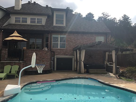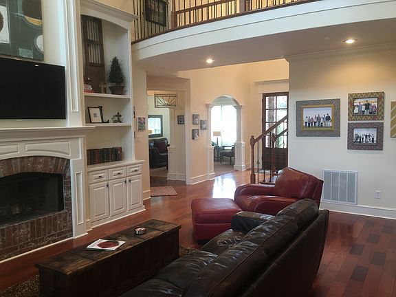 Grand Custom built home, unique entrance with stairs leading to an open balcony upstairs overlooks foyer at front & great room at back. Formal dining has butler serving area, Wonderful kitchen features Cherry Cabinetry, gorgeous top of the line appliances, slab granite, breakfast bar & walk-in pantry.Large Bonus room upstairs. Beautiful Walnut Wood floors enhance the intricate detail found throughout. Huge bricked deck area, Large room under home has overhead door,lots of storage, may be used as safe room. Saltwater Pool and hot tub