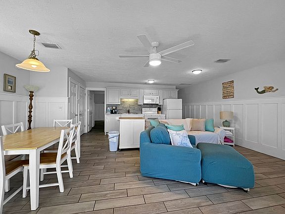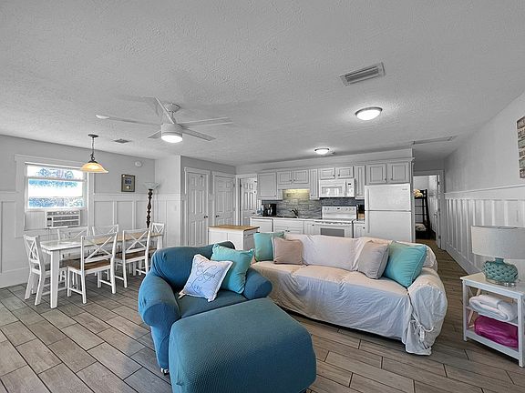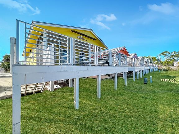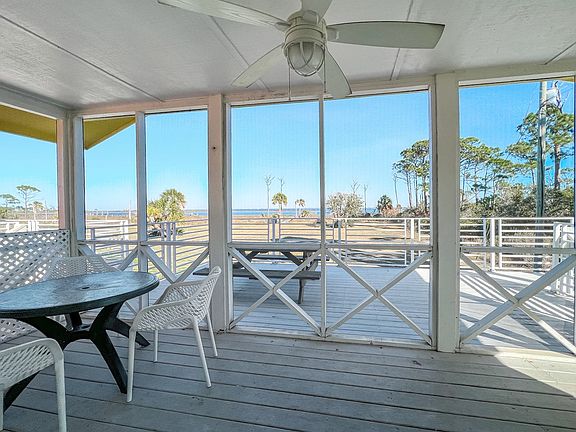 ENCHANTING 2BD/1BA BAY FRONT VILLA IN SCALLOP COVE ON THE N CAPE! You've found your next getaway destination w/open & airy living/kitchen/dining room. Plank tile flooring throughout adds to the appeal & elongates the space. Two BD share a nicely appointed BA w/walk-in shower & oversized vanity. Bayfront windows capture the view across the courtyard leading to the community dock. Outdoor space is not lacking w/a large, screened porch & open deck for entertaining. Under house storage & parking is an added bonus. Included in the HOA dues are deeded beach access to pet friendly beaches, water & trash. Fish from the shoreline of the Gulf of Mexico or launch your kayak & explore St Joseph Bay. Already an established rental, this would make an ideal investment opportunity. Don't delay! Schedule a showing & tour of the area today!