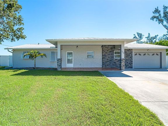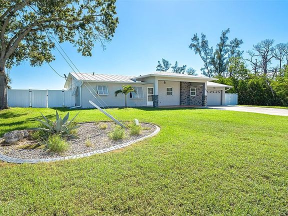 One or more photo(s) has been virtually staged. Welcome to coastal living at its finest. This beautiful 3-bedroom, 3-bath waterfront home is nestled on an oversized lot along scenic Godfrey Creek, offering serene views, exceptional privacy, and direct access to open water with just one fixed bridge. Boaters will appreciate the private dock, perfect for launching sunset cruises or day trips to the Gulf. Step into your private oasis featuring a oversized in-ground pool and a spacious screened lanai with a full pool bath, ideal for outdoor entertaining. The durable metal roof adds peace of mind, while the open floor plan effortlessly blends indoor and outdoor living. Located just minutes from Manasota Key and all three of its pristine beaches-Englewood Beach, Blind Pass Beach, and Stump Pass Beach, this home delivers the best of the Florida lifestyle. Whether you're enjoying a quiet morning on the water or entertaining guests in your tropical backyard retreat, 150 Crestview Dr offers the perfect blend of elegance, comfort, and coastal charm.