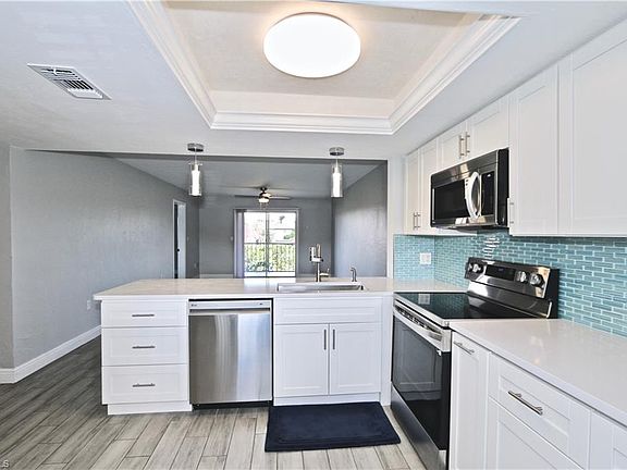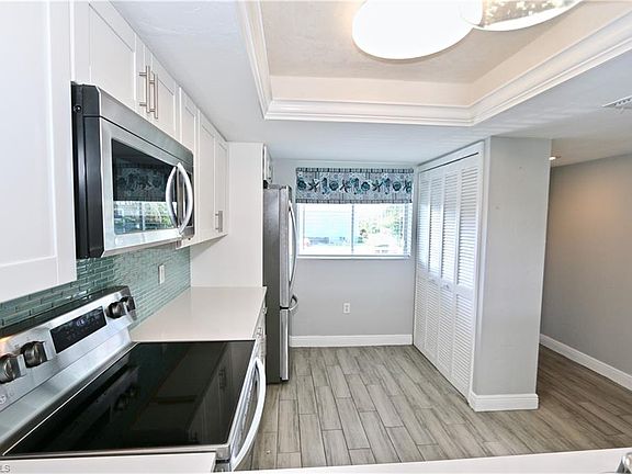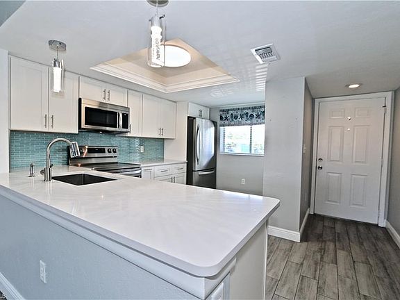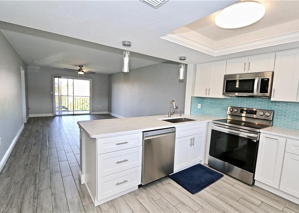Naples Keep is located in the highly desirable Palm River neighborhood, this spacious 2br/2ba top floor condominium has a completely remodeled Kitchen with all new stainless-steel appliances that are less than 6 months old, quartz countertops, new shaker style cabinets, wood look tile throughout entire home, updated bathrooms, new washer and dryer. Great main bedroom with private bathroom split bedroom floor plan. An amazing sunset view from the lanai. Low fees, new roof, great community pool. West of I-75 and minutes away from Naples beautiful white sand beaches. Perfect for full time living or a vacation home close to all Naples has to offer.