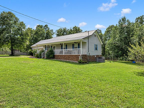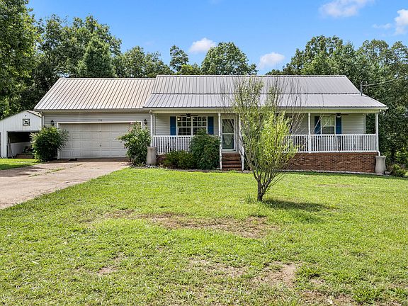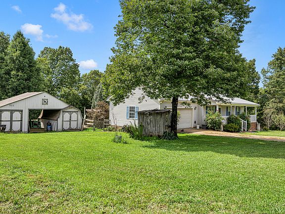 This sweet home welcomes you with nice fully covered porch. Walk into the 3 bedroom, 2 fully bath home with Oak cabinets, laminate hardwood floors. Spacious 2 car attached garage. Keep your tools, mower etc in the detached shed/barn. Out back is a storage container converted into a storm shelter equipped with electric. Large enough for the whole family. A beautiful yard with a producing grape vine and apple tree. This home is sitting on 2.3 acres with a great amount of road frontage. No HOA fees. Fiber Optic high speed internet.