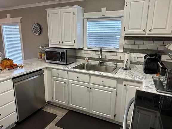 #6780- Completely renovated and updated! This 1997 manufactured double wide has all new flooring, new paint throughout, new kitchen cabinets and countertops, new appliances, new backsplash, new fixtures, molding throughout, all new exterior doors, new covered back porch, new driveway with 2 car carport, HVAC only 1 year old, and built-ins throughout. Must see!