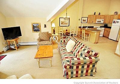 MASSIVE 1-BEDROOM, 2-BATH top floor Dakota Lodge condo with murphy bed, cathedral ceilings and premium storage. Bigger than most 2-bedrooms, sleeps the same and is less expensive. Features a spacious floor plan, large kitchen, deck with mountain views and dual vanities in the master bath. Located the in heart of River Run with an easy walk to skiing, dining, shopping and fun. Never rented.