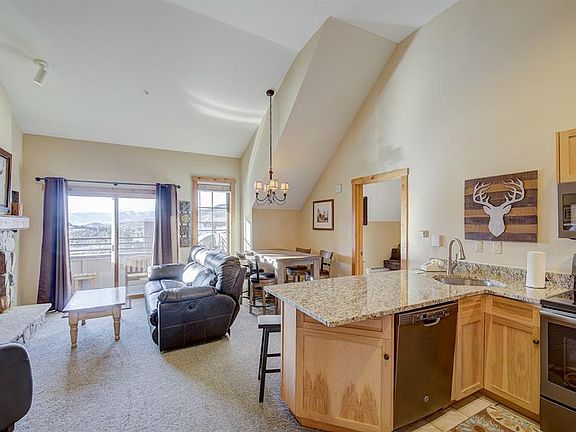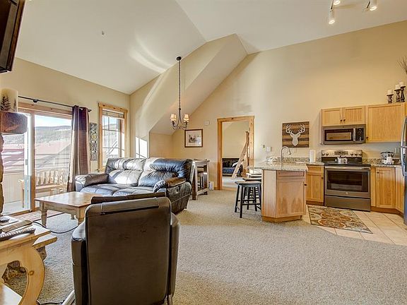 PRICE REDUCED $10,000! Penthouse condo has huge views of the sunset over the Gore Range with soaring vaulted ceilings and fantastic views of the ski slopes and the mountains. Dakota Lodge 2 bedroom 2 bath over-sized floor plan provides extra space. King Master bedroom and Double bunk plus futon 2ND bedroom sleeps 8. Families enjoy the Dakota Lodge Pool and hot tubs, the Ice Skating rink, and the location steps to the River Run Gondola and lifts, restaurants and shops. Excellent Rental History!