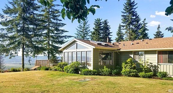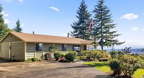 Stunning view of the Columbia River and Mt. St. Helens from your deck. Watch the ships go by all day. Bright and sunny one level home. Three bedrooms, two baths, open kitchen and living area with wood stove. 24x30 detached garage, plus 12x14 shed and RV parking with power. Cedar siding. Large deck overlooking Columbia River. Beautiful 5 acres with fruit trees at the end of private road. New roof, paint, water filter system and pump in 2017. Gated driveway, must have appointment.