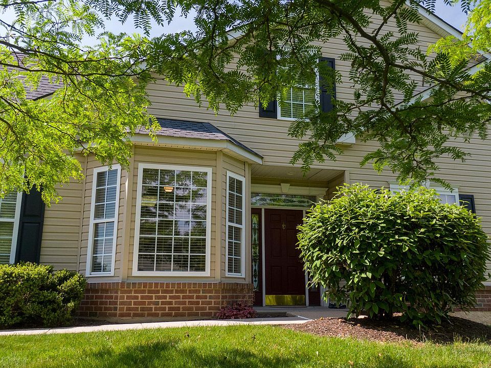 END UNIT with 2-car garage is now available in Village at Dorchester (55+ community). This is a wonderful location with spacious side and rear yards. Entry with beautiful hardwood flooring, cheerful kitchen with 42" white cabinets and tiled back splash. Sip your morning coffee in the sun filled breakfast area. There is a large open pantry conveniently located right off the kitchen and laundry room. The open floor plan will delight with the combination dining room/living room. Plenty of windows allows for streaming natural light throughout this living area. The living room offers a marble surround gas fireplace and a glass door for access to the rear deck. The large main bedroom presents a tray ceiling, walk-in closet, a double closet, and full bath with double sink, vanity area, and tile floor. Another bedroom also with a walk-in closet, a spacious double closet, and full bath off the hall completes the first floor. The 2nd floor opens to a very spacious 3rd bedroom with full bath (and storage area), and a double closet. This space is perfect for a guest bedroom or office. There is also a finished basement with sliding glass doors to access the private patio where you can watch the evening wildlife. There is storage space in the basement as well as the mechanical systems in the unfinished area. And the cherry on top is the new roof installed in Dec. 2023. This beautiful community offers serene walking paths, close proximity to restaurants, theaters, shopping, and highways for commuting. There is also a clubhouse which contains a fitness room included in the monthly fee. This community is very well maintained by the HOA. Just one look and you'll want to make this your next home! Don't delay!