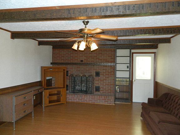 Great custom built 4 BR, 1 BA ranch in good condition offers original hardwood floors, spacious eat-in kitchen with lots of birch cabinetry, living room with brick gas logs fireplace & built-in shelving, two bedrooms feature built-in dressers with vanity/dressing table. Living room and 2 bedrooms were added around 1990. All appliances convey, all curtains & blinds convey, all remaining furniture along with freezer on back porch convey, propane tank conveys. Large crawl area houses water heater, oil furnace & heat pump unit. In-ground oil tank. Pull down stairway to attic where heat pump ductwork is. Great covered porch and deck at back of house, covered porch on front. Windows have been replaced. New survey to be recorded at closing. Heat pump and oil furnace. Oil heat kicks in at 30 degrees.