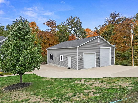 Welcome to this stunning 4 bed, 3.5 bath custom ranch on just over 3 acres in unincorporated Lake St. Louis! This property sits at the end of a newly paved private drive for a beautiful wooded homesite. This home features ample garage space w/ a 2 car side entry garage and a 38x50 detached garage w/ oversized doors that that will fit an RV or 4+ cars. Inside you are greeted w/ high end finishes throughout including high ceilings, tiled floors, tall baseboards & neutral paint. The luxury kitchen boasts custom cabinetry, granite countertops, center island, ss appliances & a breakfasts rm w/ triple sliding doors that open to the 27x14 screened composite deck w/ a custom enclosure, woodburning fireplace w/ stone surround & outdoor kitchen. Retreat to the deluxe primary suite w/ a jacuzzi tub, walk-in shower, dual vanity & walk-in closet w/ a custom closet system. Enjoy additional living space in the finished walk-out LL w/ a home gym, 2nd living area, full bed/bath and plenty of storage. COOL: 14 SEER+