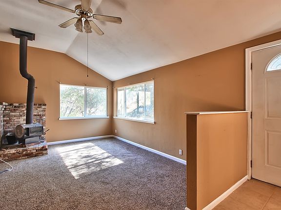 Great Opportunity. 3 bed, 1 bath home on 2 acres. New carpet, paint, laminate floors in kitchen, two cozy wood burning stoves: on in the living room & another in the dining area off the kitchen, large deck over looking property and more! A must see!