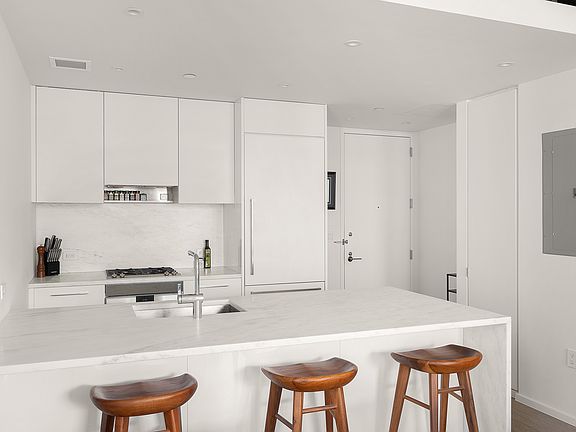 Spectacular City Views from Every Room! Residence 10A offers an elevated living experience, where soaring 10'6" ceilings and expansive north- and east-facing windows frame open city views and bathe the home in natural light. At the center of the residence is a meticulously designed kitchen featuring custom white lacquer cabinetry, a striking Danby marble waterfall island, matching countertops and backsplash, and a premium Gaggenau appliance suite. The king-sized bedroom is thoughtfully outfitted with custom upgrades, including California Closets and motorized shades for effortless comfort and privacy. The spa-like bathroom showcases a refined mix of two types of Italian marble, custom walnut cabinetry, and an integrated vanity with polished nickel fixturesenhancing both depth and light. The main living space is equally inviting, with radiant heated floors and a discreet in-unit washer and dryer that add everyday functionality without compromising on elegance. Residents of this boutique Gramercy Park building enjoy a curated selection of luxury amenities, including an outdoor heated swimming pool, state-of-the-art fitness center, furnished rooftop sundeck with electric grill, 24-hour concierge, on-site superintendent, children's playroom, laundry room, and bike storage. This exceptional home is available furnished or unfurnished. Pets considered on a case-by-case basis.
