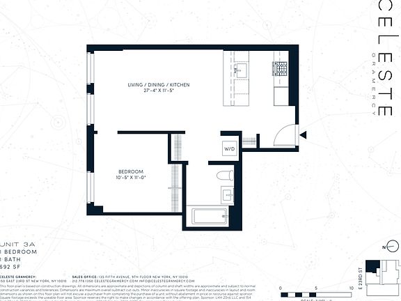 Ultimate luxury living in the heart of Gramercy. This bright and spacious 1 bed/1 bath has it all. 9.5 ft ceilings, floor-to-ceiling windows, and open chef's kitchen are just some of the highlights; All located within the only condo building in Gramercy with an outdoor heated swimming pool for it's residents. The Urban Homes-designed, open chef's kitchen features high gloss white lacquer cabinetry from Aster Cucine. There is a full suite of Gaggenau appliances for the most discerning chef, in addition to a Marvel wine cooler. Danby marble countertops and backsplash complete this stunning designer kitchen. The open great room provides plenty of space for a dining area in addition to the living area. The floor-to-ceiling windows offer abundant light to both the living room and the bedroom. The bedroom features large closets and a beautiful floor-to-ceiling, wall-to-wall picture window that looks out onto tree-lined 23rd Street. The stunning bathroom is highlighted by Zucchetti fixtures and St Grigio marble floors in a chevron pattern. It also has an oversized deep soaking tub and rainfall shower. This sophisticated home features 5 inch natural walnut flooring, with radiant heat flooring capability. There are two zones for air, one for the living room and a separate zone for the bedroom. Remote-controlled blinds have been installed on all windows. There is a Bosch washer and dryer in unit. Celeste Gramercy is a 51-unit full-service condo located in the heart of the Gramercy neighborhood. The ODA-designed building features an extensive array of amenities including: outdoor heated swimming pool, rooftop sundeck with BBQ grill, state-of-the-art fitness center, resident lounge, children's playroom, common laundry room, and bike room. The lobby is attended 24 hours and there is a live-in resident manager. The convenient location is just steps from Gramercy Park, Madison Square Park, the 6/R/W trains, and some of NYC's finest dining and shopping.
