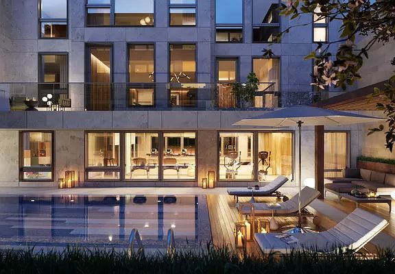 Welcome to 5D at Celeste. This expansive split 2 bedroom 2.5 bath features all South-facing windows that provide magnificent sunlight from morning to evening. A spacious foyer includes a closeted Bosch washer and dryer as well as generous coat closet. Conveniently located off of the main living area, the powder room is a masterpiece of international design, complete with custom cabinetry and mosaic marble tile backsplash. Six-inch wide walnut floors are a perfect compliment to the neutral warm palette of finishes throughout 5D. Showcasing unrivaled craftsmanship, the brilliant open concept kitchen was custom designed by Urban Homes featuring high-gloss white lacquer cabinetry by Aster Cucine, Gaggenau appliances including a wine cooler, as well as a full-height pantry. The unique kitchen countertops and backsplash are Danby Marble locally sourced from Vermont . The expansive King-size master suite features much-sought-after Southern exposure and an abundance of closet space. A tranquil retreat is within reach as the windowed en-suite master bath features radiant heated Grigio St. Nicolas grey chevron floors, double vanity, and Zucchetti fixtures. The wet room has an oversized shower as well as a deep soaking tub with Bianco Dolomiti marble walls. Exquisitely appointed in the heart of Gramercy, Celeste offers a world of privacy and serenity steps from Madison Square Park. Designed by award-winning architect, Eran Chen of ODA, Celeste soars 20 stories, and showcases a magnificent collaboration of limestone and glass, as the upper floors taper in like the points of the North Star. Residents have access to an extensive selection of world-class private indoor and outdoor amenities including: 24 hour attended lobby/doorman/concierge, outdoor pool, landscaped sundeck, rooftop terrace with BBQ, children's playroom, lounge area and state-of-the-art fitness center.