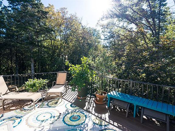 Amazing setting with home tucked into the woods. Once you see the views from Kitchen and Main living areas, you will be sold! This 1 1 2 story offers privacy, yet updates galore and close to town. Near to Rock Bridge State Park and the vibrant South Side of Columbia! Enjoy your own private park like setting and private lodge. Home features: solid surface counters, hardwood floors, giant sun-room dining addition, Anderson windows, two tiered maintenance free decks, newer roof, walkout basement, Gas fireplace, 2 HVAC systems heat pumps, vaulted ceilings, and main level master and laundry make this home a rare find. Basement can be used or reconfigured to Mother in Law Suite. Plenty of storage inside and out, dog run and small out buildings stay with home.
