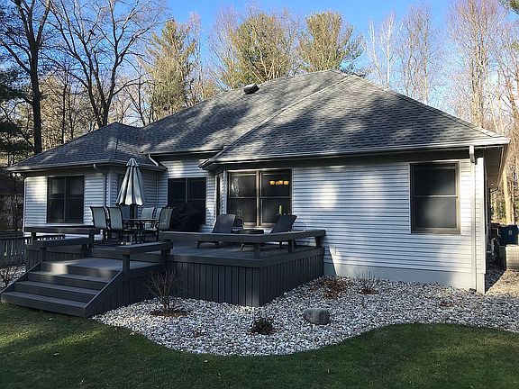 Spectacular Brick Ranch with over 3600 sq ft of livable space on a beautiful 1-acre lot in Lincoln Estates Subdivision in Lincoln Township, Midland. This 4 bedroom/3 bath home hosts a spacious kitchen with premium cabinets, granite countertops, glass and travertine backsplash, under and over LED cabinet lighting, stainless appliances, and an eat-in kitchen. The main floor also has a formal dining room, currently being used as an office, a large living room with large windows, main floor laundry, and an office. On the main floor, you'll find a master suite with a walk-in closet, shower, his/her sinks, and a jetted tub. There are two more 2 more bedrooms, both with walk in closets. Downstairs you'll find a family room and home theater with a gas fireplace, an exercise room, 3 piece bath, and storage rooms too! Attached 2 car garage and an additional detached heated 3 car garage has plenty of storage and workshop areas. Home is very efficient with ample insulation, 90%+ furnace, Anderson windows, and Therma-Tru fiberglass doors. Outside you'll find a nicely landscaped yard, with a smart sprinkler system, composite deck overlooking a beautiful yard with mature trees! New roof in 2019 with dual power solar roof ventilators.