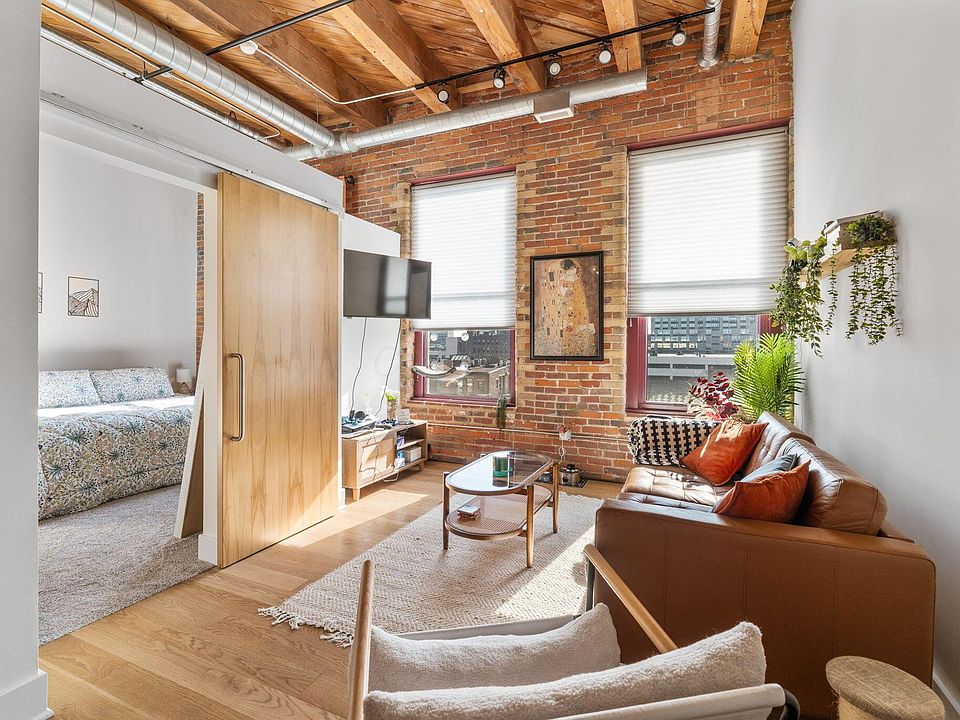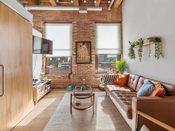 Inside, you'll find a bright, open layout with large windows that flood the space with natural light, highlighting the character and history of this landmark building. The kitchen offers modern appliances and ample storage, while the spacious bedroom and full bath provide comfort and privacy.