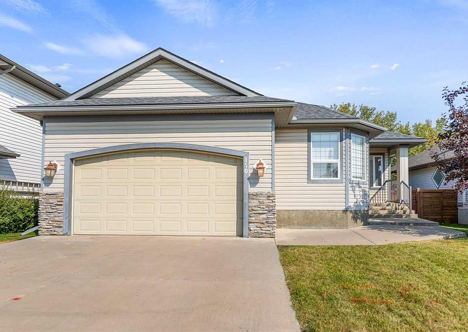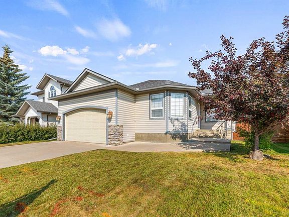 Nestled in the serene community of Aspen Creek, this beautifully maintained bungalow enjoys an exceptional setting—backing onto mature trees, a park, and scenic walking paths. From the inviting covered front porch, you step into a spacious living room centred around a cozy fireplace, perfect for relaxing evenings. A formal dining room provides an elegant backdrop for gatherings, while the bright eat-in kitchen is a true highlight with extensive cabinetry, a central island, a convenient pantry, and a bay-window dining nook that floods the space with natural light. The main floor hosts three comfortable bedrooms, including a primary retreat complete with a full ensuite and generous walk-in closet. Downstairs, the fully finished basement offers impressive versatility, featuring a large bedroom, two expansive recreation rooms, an office area, and three storage rooms—ideal for hobbies, guests, or extended family. Recent updates bring peace of mind with a new roof (2017) and a brand-new hot water tank. Added conveniences include main floor laundry, central air conditioning, an attached double garage, and a raised back deck that overlooks your own private forested oasis. The landscaped yard enhances the sense of seclusion and tranquility. Modern upgrades throughout elevate everyday living: the home is wired for audio, features custom smartphone-controlled LED lighting on the basement stairway, and includes a radon reduction system, water scale reduction system, water filtration, and a PCO central air purification system. With schools and shopping nearby, and set in one of Strathmore’s most desirable locations, this home offers the perfect blend of comfort, convenience, and serenity.