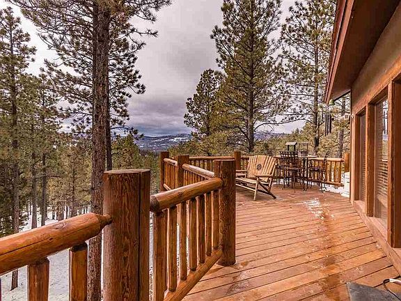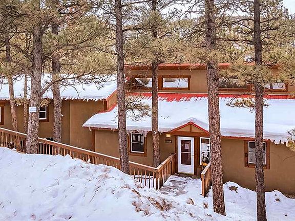 Wow! LOCATION, LOCATION, LOCATION! This beautifully decorated mountain home is situated at 8840' elevation and approximately 200 yards from the ski platform on Angel Fire Resort's Headin' Home ski run. It is as close as you can get to ski in and ski out without paying the high prices! At this house, you are able to walk to the ski slopes and ski home when your day on the slopes is finished. This 3,286 sqft 3 bedroom/3 bath home has an additional two sleeping lofts and a lower level bunk room. It is cozy for two or can sleep 16 comfortably. The stucco and log trimmed cabin sits on 1.77 acres of majestic ponderosa pines and has 3 great outdoor living spaces with stunning views of Osha Peak and the Carson National Forest. The lower level has a hot tub that is privately situated among the trees for warming up after a long day on the slopes. Complete with grill and outdoor furniture, the log railed deck is private and spacious enough to accommodate a large gathering. This professionally decorated home is being sold totally furnished and accessorized down to the forks! There are no exceptions. It is move in ready to enjoy or to use as an investment property. The VRBO rental history on this house has been remarkable. The house is laid out with the spacious master suite on one end of the house away from the guest quarters. French doors open to a private master deck. The master suite has a king sized custom log bed with massive headboard and log bench. The bed faces a kiva fireplace and the Ponderosa forest. The master bath has been newly remodeled with beautiful Kohler sinks mounted on a slab of Spruce. The walk in rain shower is spacious and rocked to perfection. From the moment you enter this mountain cabin, it feels like you have "arrived". It is exceptionally decorated with all kinds of mountain decor that is all included in the purchase. This house has a mudroom entry with the two guest bedrooms at either end of a hallway. The guest rooms have queen