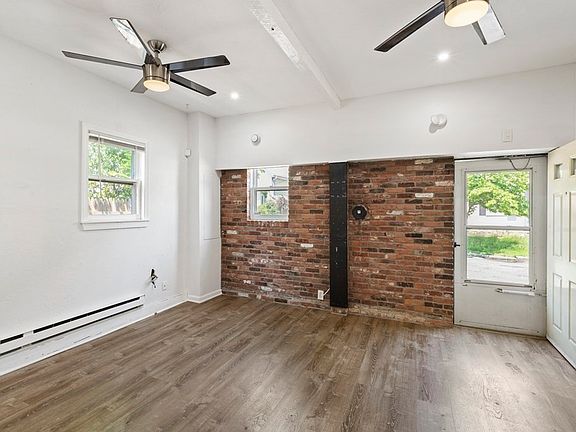 Welcome to 150 Ellsworth St! This move-in ready colonial, situated on the West Side of Brockton, is ready for its new owner. The first floor boasts a spacious family room with 10ft ceilings, adorned with new ceiling fans, updated lighting, and fresh flooring that seamlessly extends into the first-floor bedroom. The kitchen has undergone a remodel, showcasing new stainless steel appliances, granite countertops, and a stylish tile backsplash. Both levels of the home feature fully remodeled bathrooms, complete with new vanities and tile flooring, providing functional and convenient living. The second level presents two bedrooms and an office/study/bedroom combo room, all offering ample closet space for storage needs. For outdoor entertainment, this home boasts a newly built screened-in deck equipped with entertainment hookups and Bluetooth speakers. With low yard maintenance and an additional storage shed, this home ticks off many desirable features on your checklist!