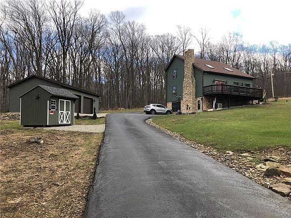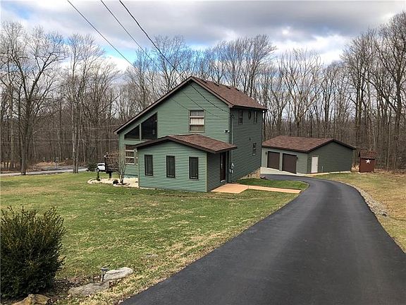 Three Levels of GORGEOUS CHALET on nearly One Acre in Bear Rocks is Completely redone INSIDE & OUT--NEW Kitchen, NEW Dining Room Addition-Freshly Painted Interior-LR serves as a Great Room with Stone Fireplace and double doors to Deck--Upper level has a 2nd Full bath and two more bedrooms--Finished lower Level Family Room with Wet Bar and plenty of space to invite all the cousins for fun in the Mountains-NEW Roof with 40 yr shake shingles, NEW Vinyl siding matches the NEW Oversized Detached Garage with 10 x 9 ft. doors to accommodate your big truck, 2x6 construction, concrete floor-NEW Oil Furnace, plus both a NEW Wood Burner & Gas Fireplace, the 2010 Well is 385ft deep--NEW Asphalt Driveway accesses both Elm & West Mt. View Drives
