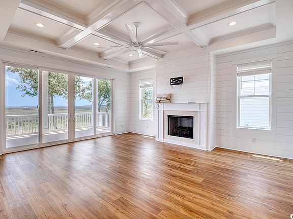 New home with beautiful views across the marsh to Litchfield Beach. The main floor features shiplap walls and a spacious, open kitchen, including a butlers pantry and walk-in pantry. The butlers pantry leads to a formal dining room perfect for entertaining family and friends. The living room opens up to a large, covered porch for enjoying the ocean breeze and spectacular views. Coffered ceilings and a fireplace provide warmth and comfort in the main living space. This floor also features a bedroom that is currently set up as a study and full bath. For owners’ and guests’ convenience, there is an interior elevator that services all three levels. Upstairs you will find the large owners suite, which provides access to a second porch to enjoy beautiful sunrises, coffee, and nature. The master bath has double sinks, a walk-in shower, and an enormous walk-in closet. The top level also features two additional bedrooms and a bathroom. Perfectly located in the heart of Pawleys Island, The Enclave is a community of custom homes on the east side of Business 17 with views over to Litchfield Beach and Midway Inlet. Residents have access to a neighborhood pool and community crab dock into the marsh.