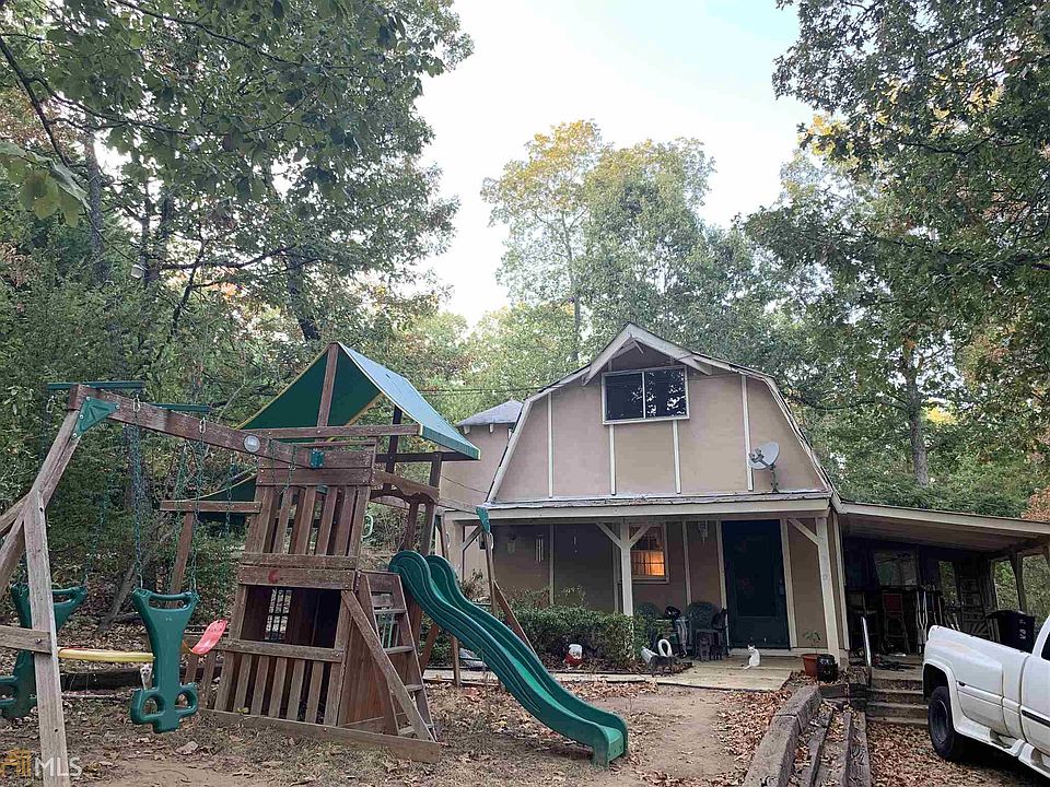 *Property sold AS IS* Very unique home with a lot of potential. Open floor plan with 2 bedrooms that are circular shaped and 2 full baths that are circular shaped. Huge loft with extra storage and a screened in front porch. 2-story workshop with electricity, garage door and carport area. In-ground pool with built in seating and hot tub. This would make a great starter home or nice investment. Priced way below value.