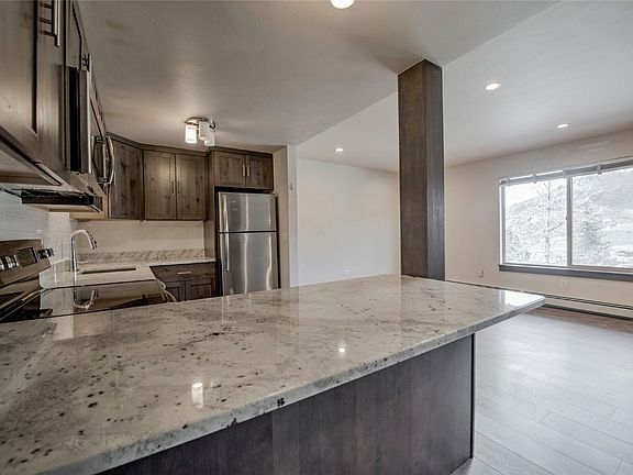 Wonderful remodeled 1 bedroom 1 bath end unit with views of Buffalo Mountain and the Gore Range. This Dillon Valley Condo has a great location at the top of the hill in Dillon. Updates include stainless appliances, new flooring, new kitchen & bath cabinets, new solid surface countertops and bath vanity. Updated solid core doors, trim, hardware and lighting throughout. Convenient and close proximity to the Town of Dillon with many restaurants, Dillon Amphitheater, Lake Dillon Marina, summer/fall Farmer's Markets, City Market, movie theater, Summit Stage bus line, hiking/pedestrian trails, and much more. A central location to 4 major ski areas in Summit plus Vail and Steamboat are easy drives. This unit has a a dedicated parking space and is a ground floor unit in the building. This is a well managed complex with new roof and exterior paint completed last year.